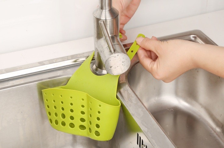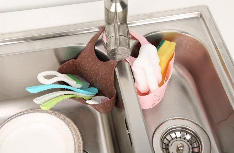 Um suporte suspenso muito prático para esponjas de lavar louça, esfregões e escovas será o seu ajudante na cozinha.