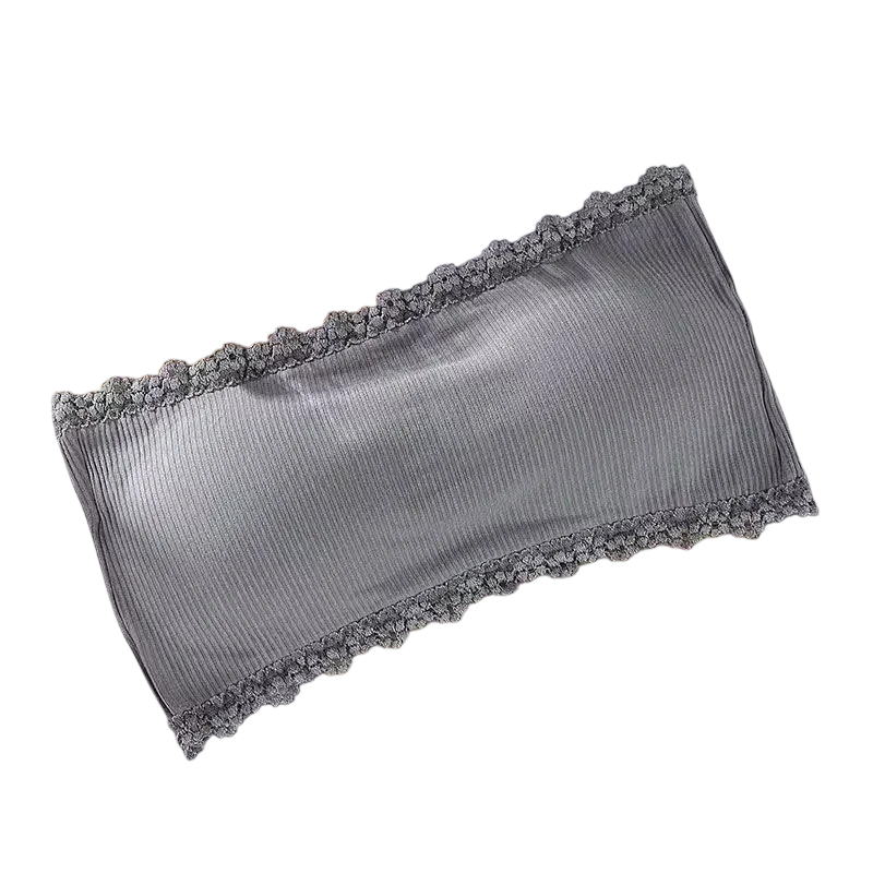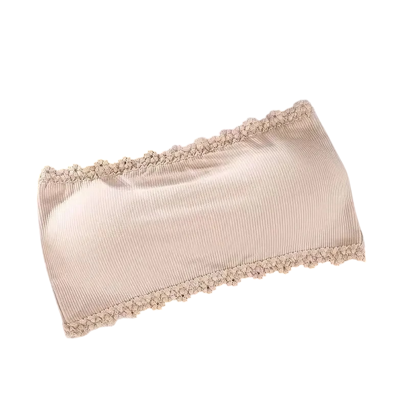 Página inicial Página inicial Roupa e acessórios Roupa de mulher Crop tops de mulher Crop tops sem mangas de mulher Sutiã bandeau feminino com renda na borda tamanho universal nylon elastano para uso diário sob roupa