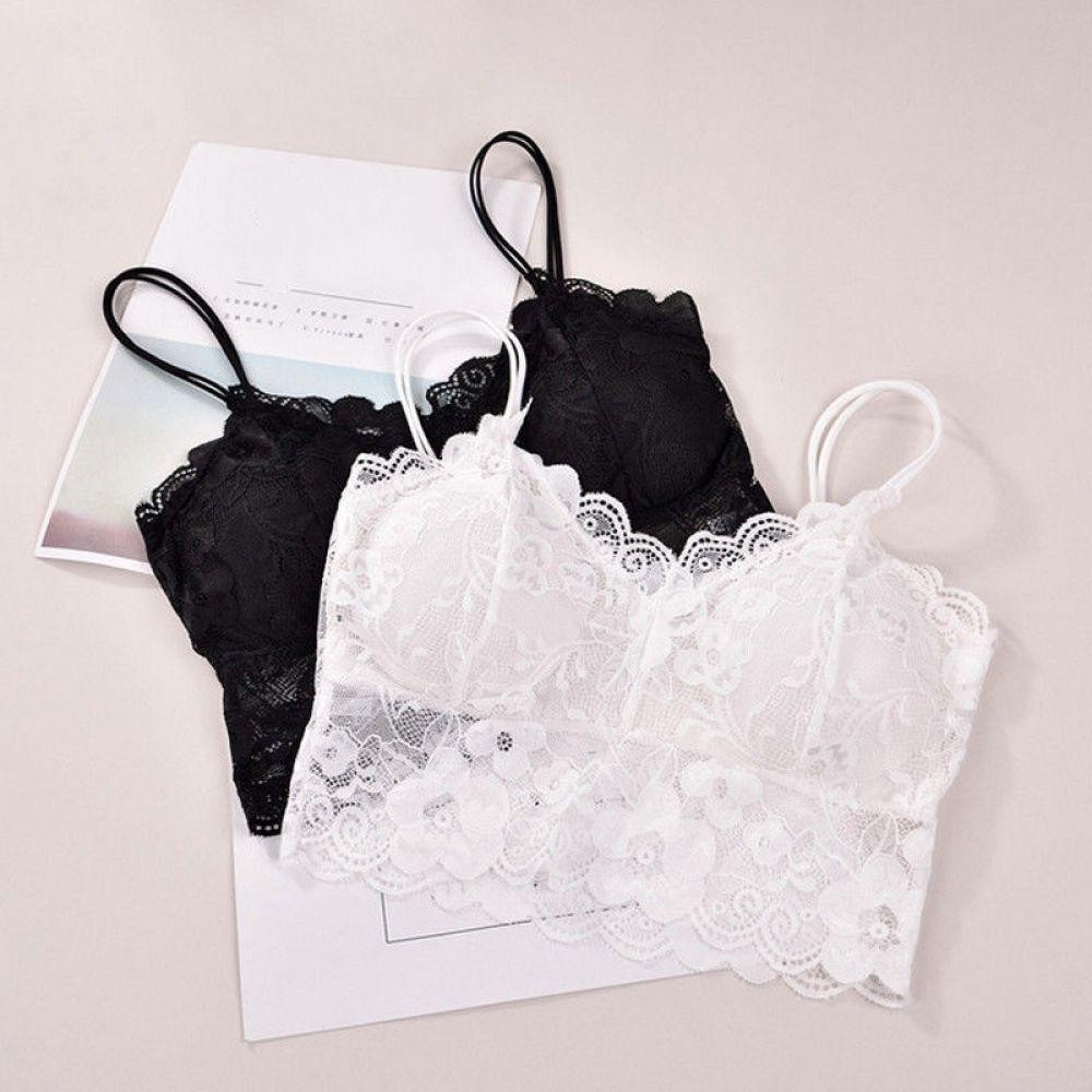 O sutiã é no estilo top e pode ser usado, por exemplo, com um cardigan.