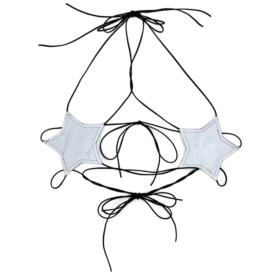 Este sutiã de cordas tem copas fluorescentes em forma de estrela.
