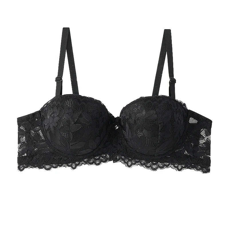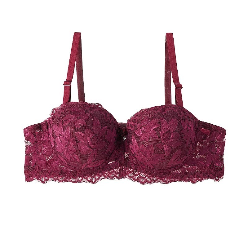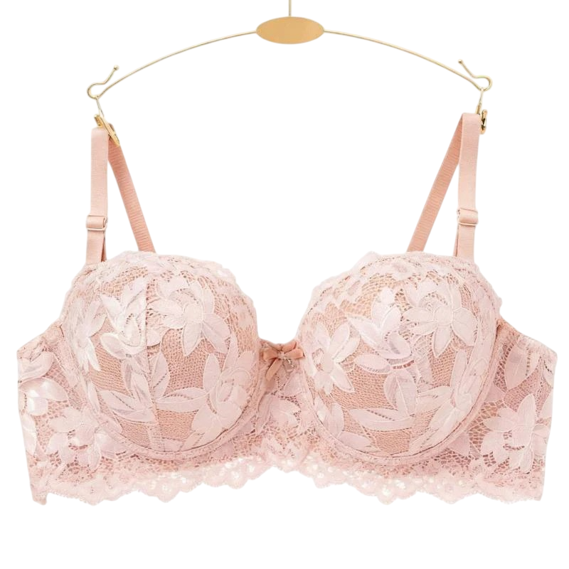 Sutiã de renda feminino com copas cheias e padrão delicado em elastano e poliamida, lingerie leve com alças para uso diário