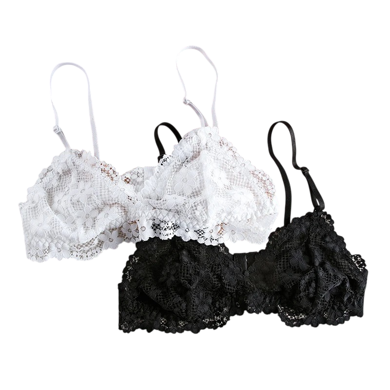 Página inicial Página inicial Roupa e acessórios Roupa de mulher Roupa interior de mulher Soutiens de mulher Soutiens de renda de mulher Sutiã de renda feminino com copas triangulares sem almofada elastano nylon leve roupa interior para uso diário