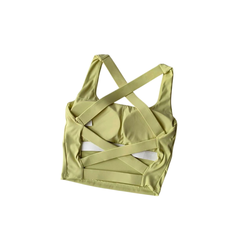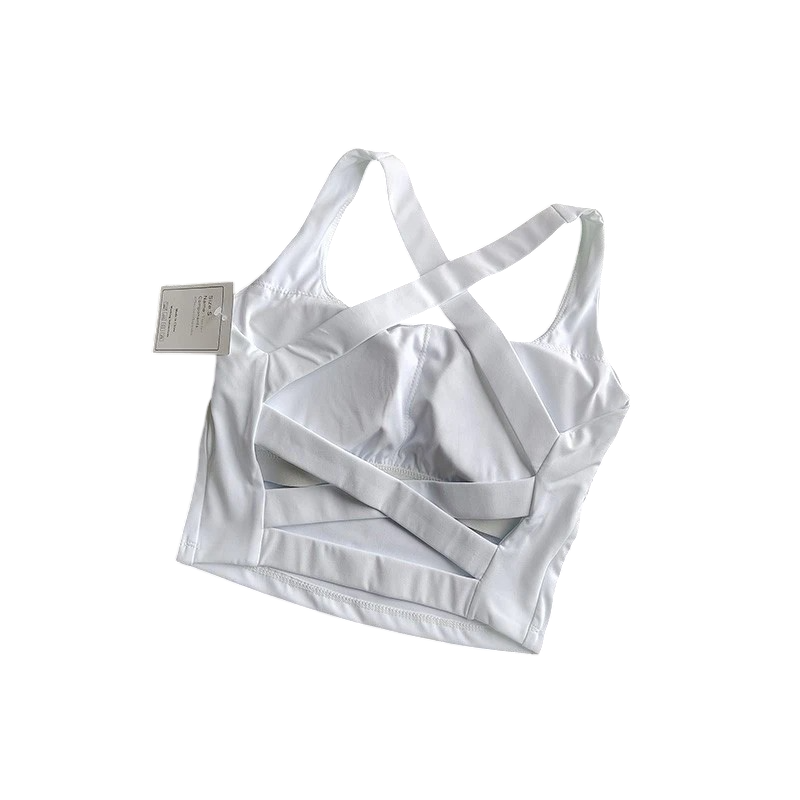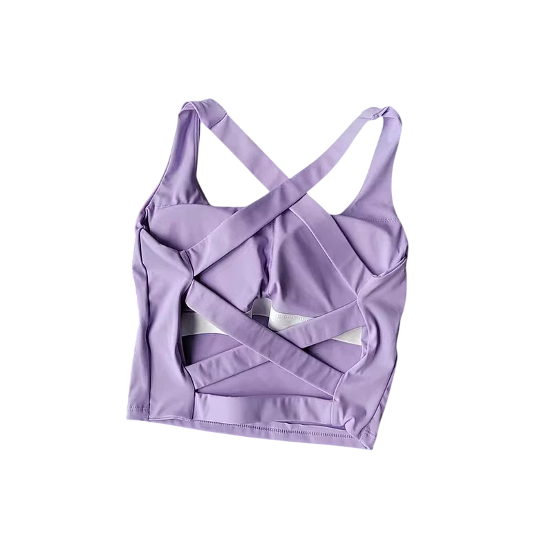 Sutiã desportivo feminino com costas cruzadas sem fecho em nylon para exercício fitness corrida e treino