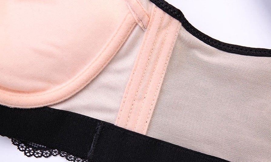 O sutiã tem alças mais largas, que distribuem melhor o peso dos seios.