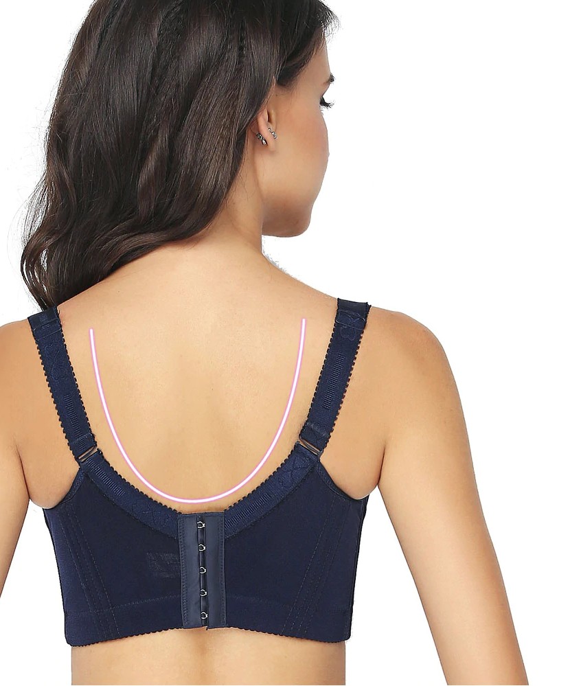 O sutiã é no estilo corpete e o fecho é com cinco ganchos.