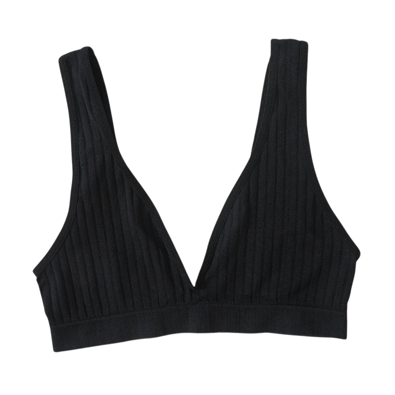 O sutiã é adequado para uso diário e para descanso, graças à sua construção leve e material elástico. A combinação de elastano e nylon garante boa adaptabilidade e resistência ao uso frequente. A superfície canelada contribui para um melhor assentamento no corpo. A ausência de fecho simplifica a manipulação e aumenta o conforto. Este modelo representa uma escolha prática para um uso confortável sem elementos complicados.