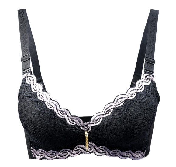 O sutiã é adornado com renda e uma pequena decoração no centro das copas.