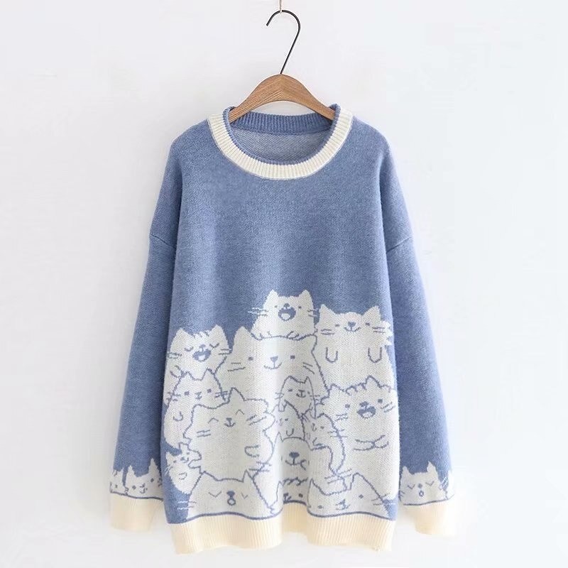 Sweater de malha feminino com gatinhos