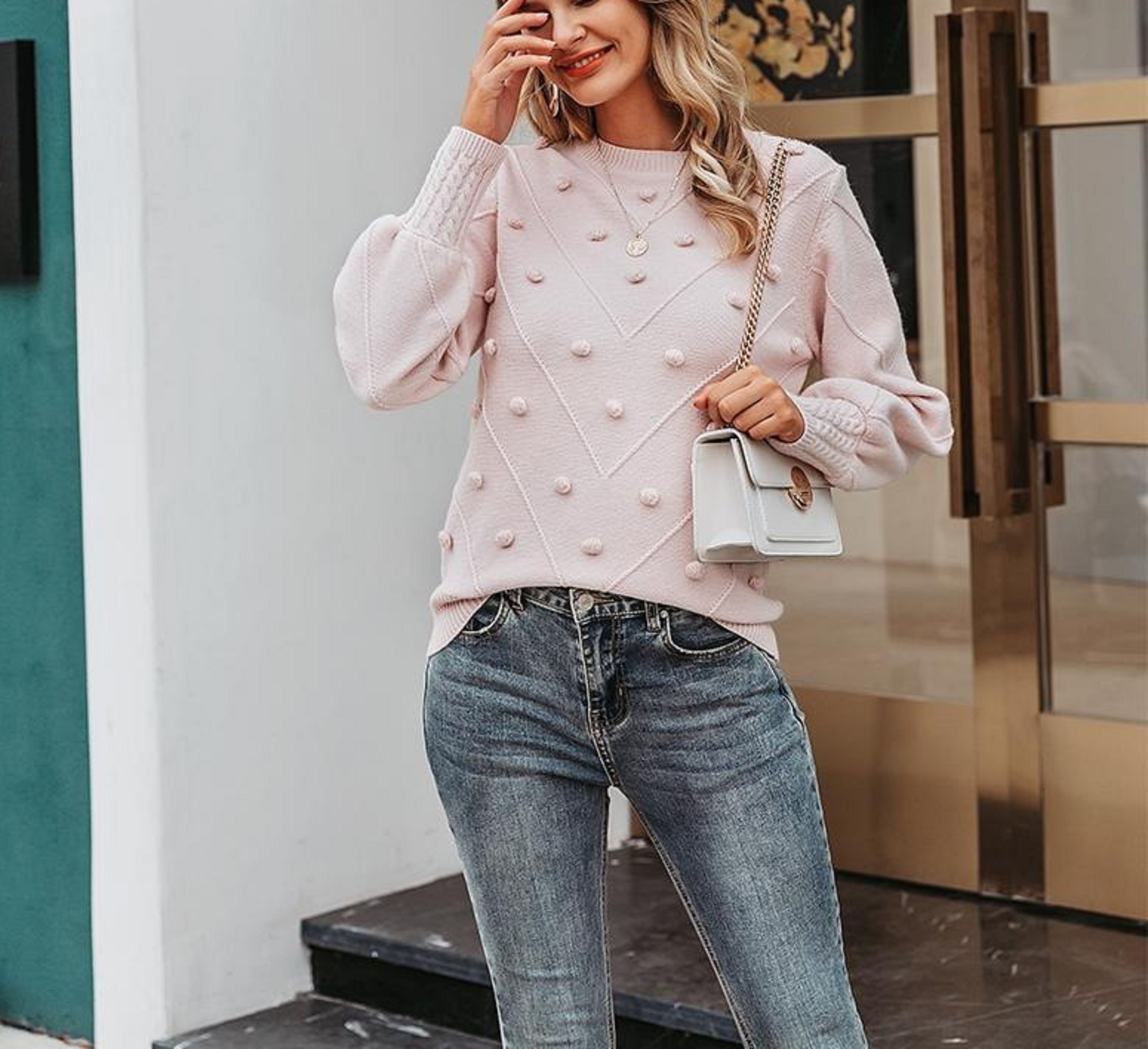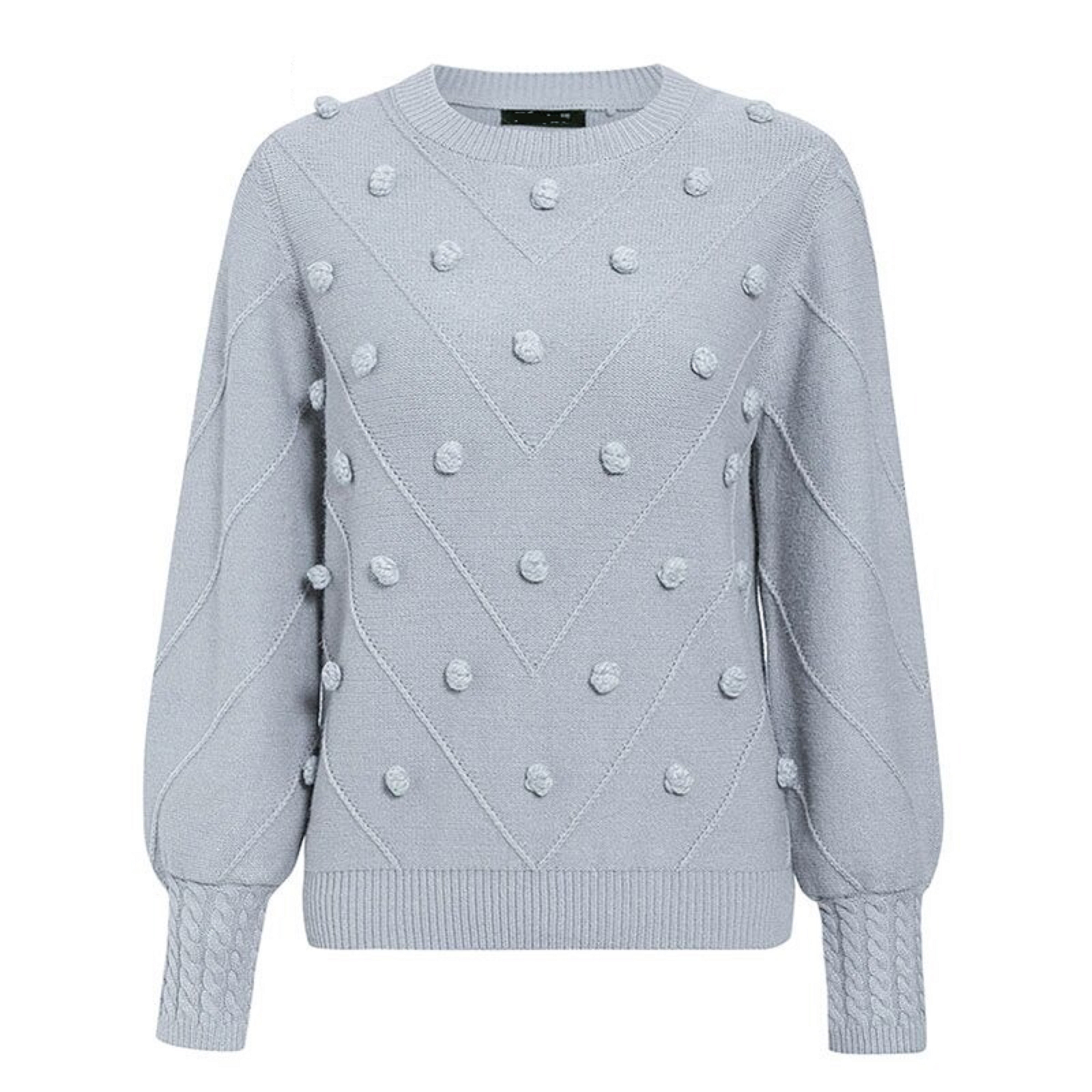 Sweater de malha feminino com pompons G354