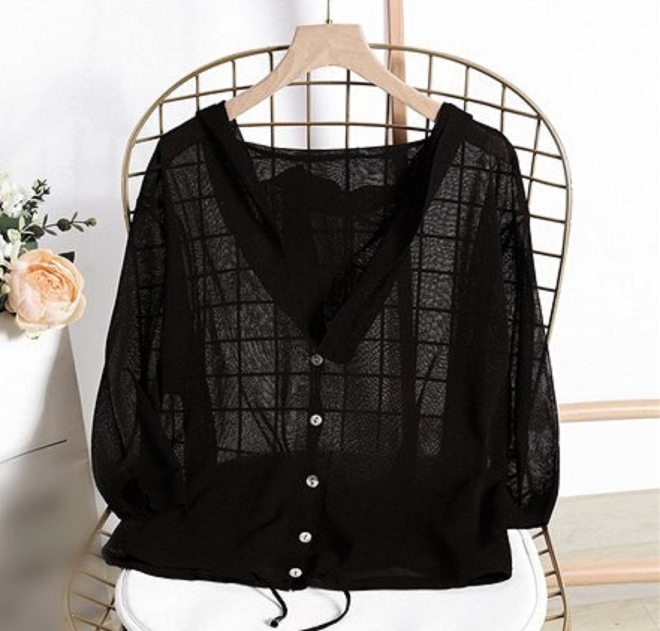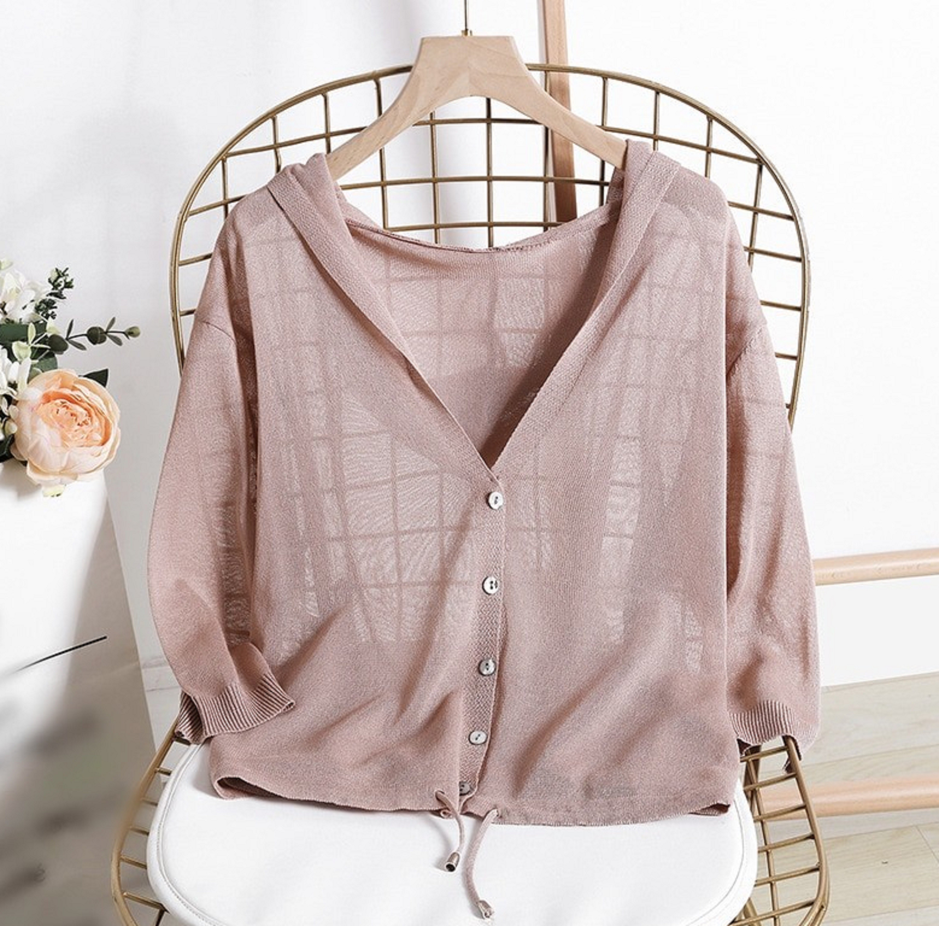 Sweater feminino com capuz e botões