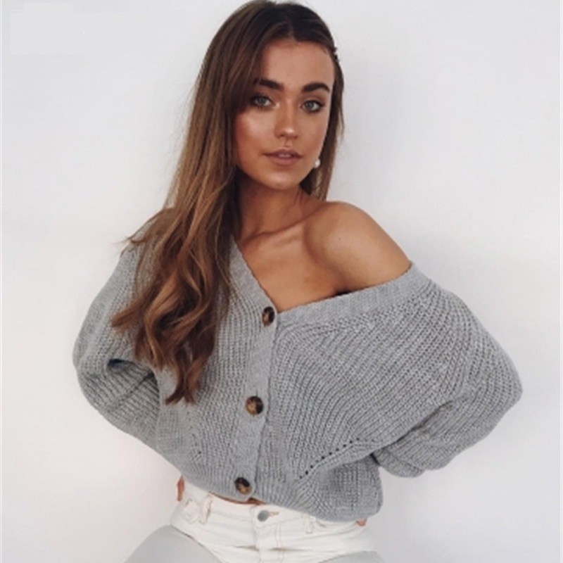 Sweater feminino solto com botões