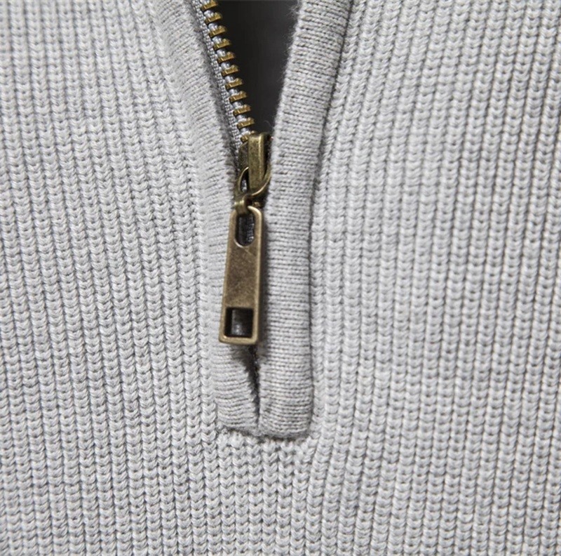 Este sweater é uma excelente escolha para homens que desejam ter uma peça versátil no seu guarda-roupa, adequada para qualquer ocasião. Graças à combinação de material natural e fibra elástica, mantém a sua forma e proporciona conforto mesmo durante o uso prolongado. O prático fecho de meio zíper confere um toque moderno e permite ajustes conforme a necessidade.