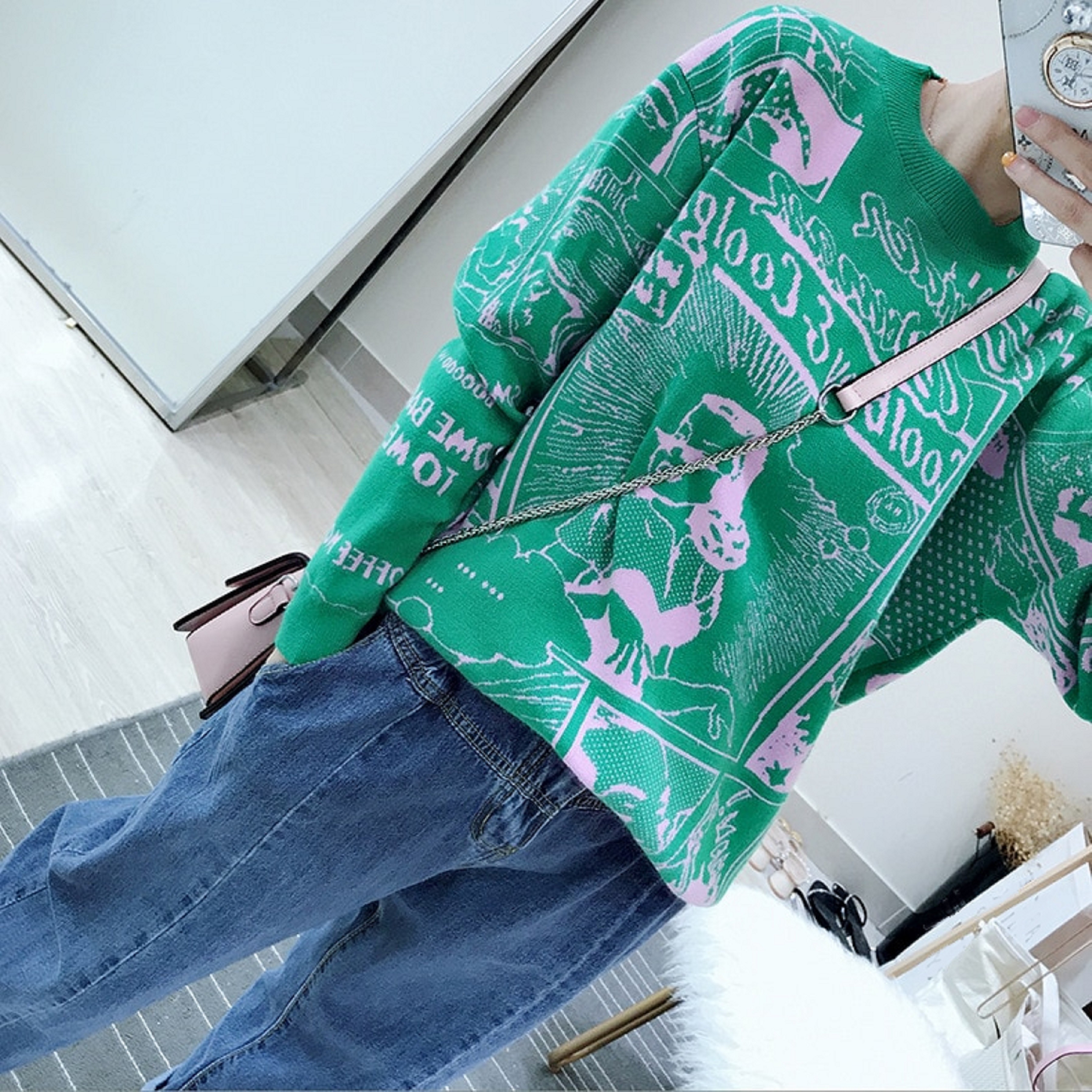 Sweater oversized feminino com estampado