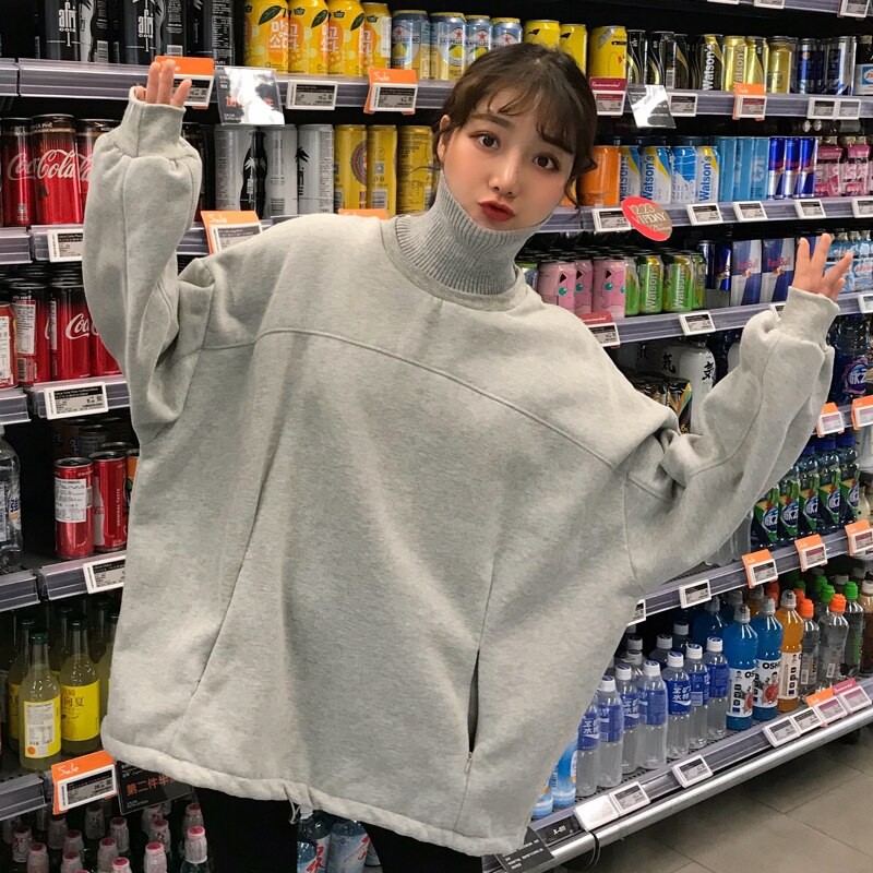 Sweater oversized feminino com gola alta