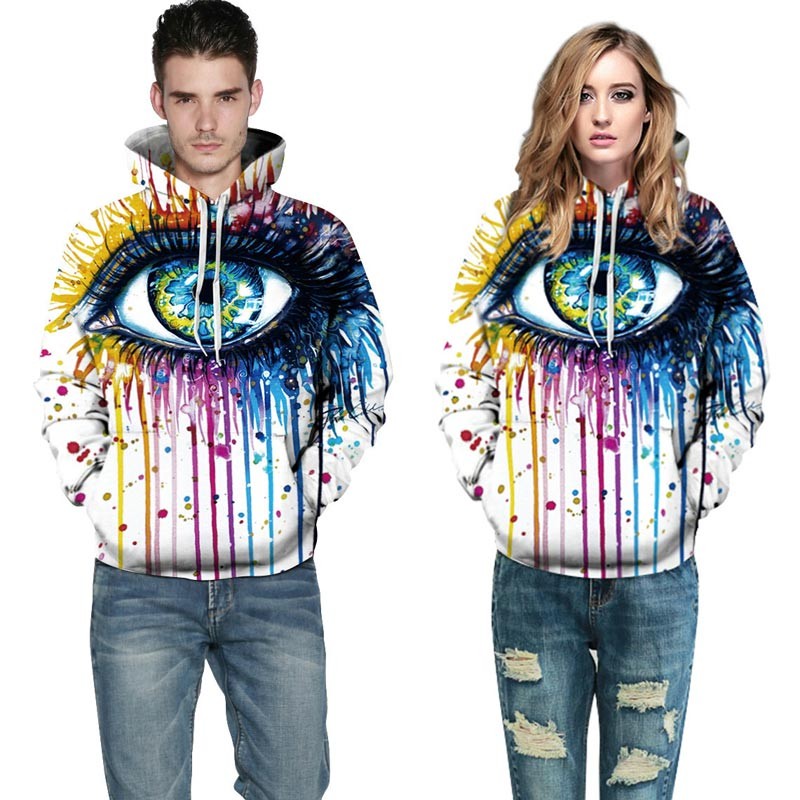 A sweatshirt com um interessante estampado 3D de um olho humano vai agradar a homens e mulheres.