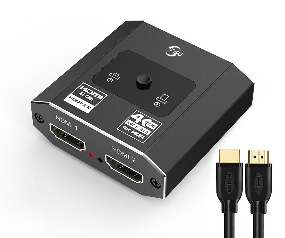 Switch HDMI bidirecional 2:1 com cabos HDMI