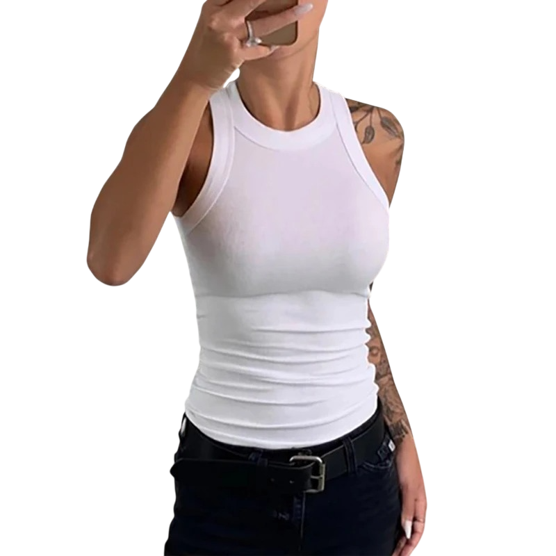 T-shirt de algodão para mulheres com alças largas, decote redondo, top confortável em algodão natural para uso diário