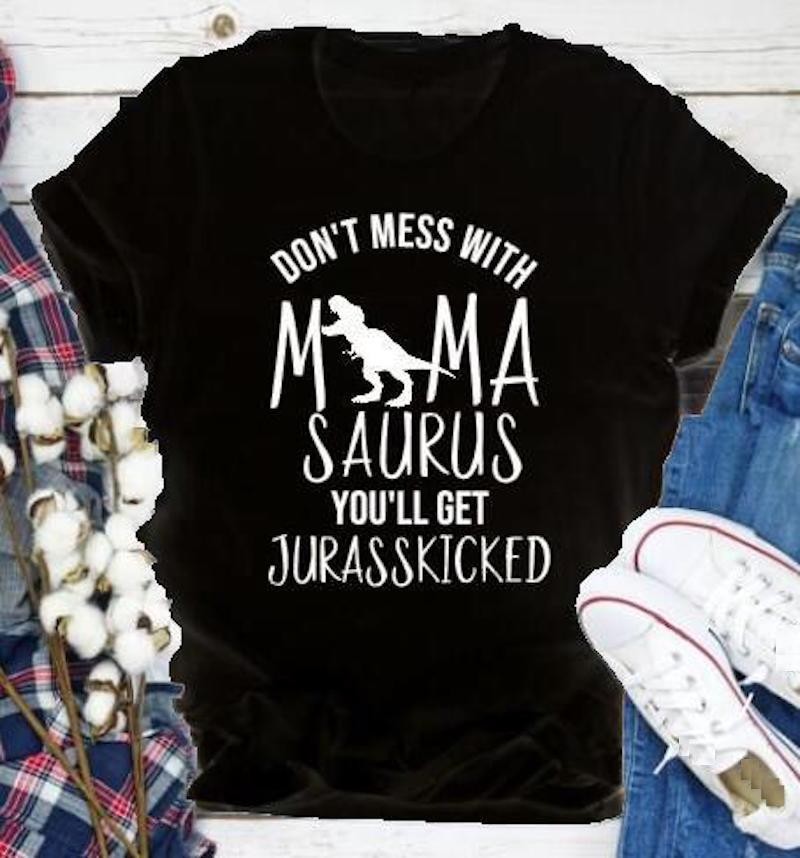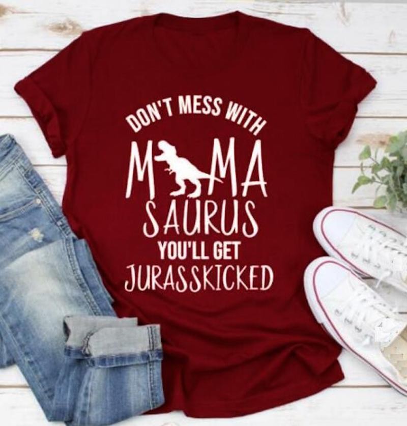 T-shirt feminina com estampa de dinossauro