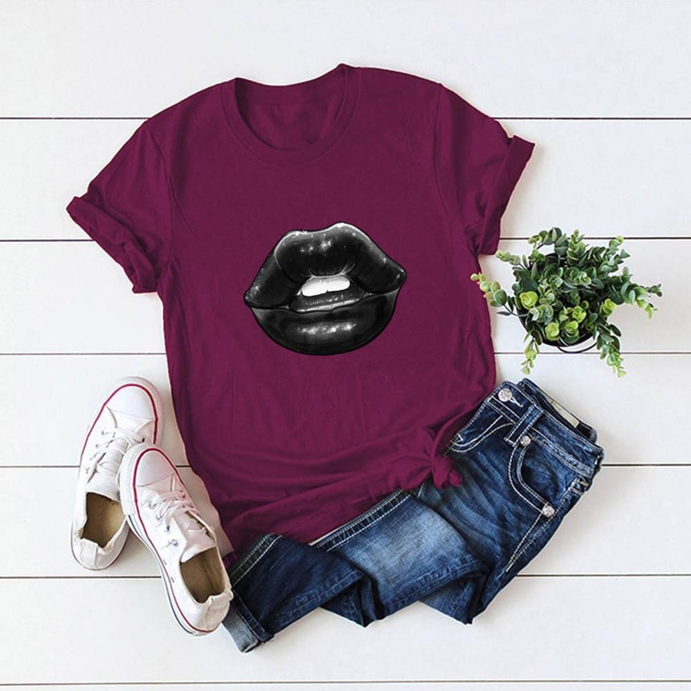 T-shirt feminina com estampado de lábios