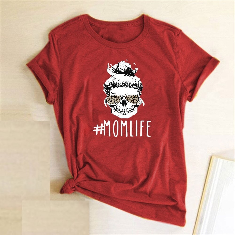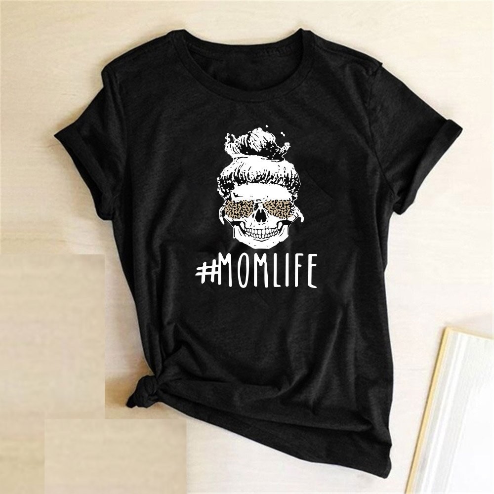 T-shirt feminina com estampado mom life B335