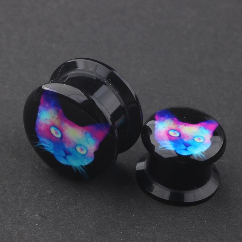 Tampão de acrílico com gato holográfico.