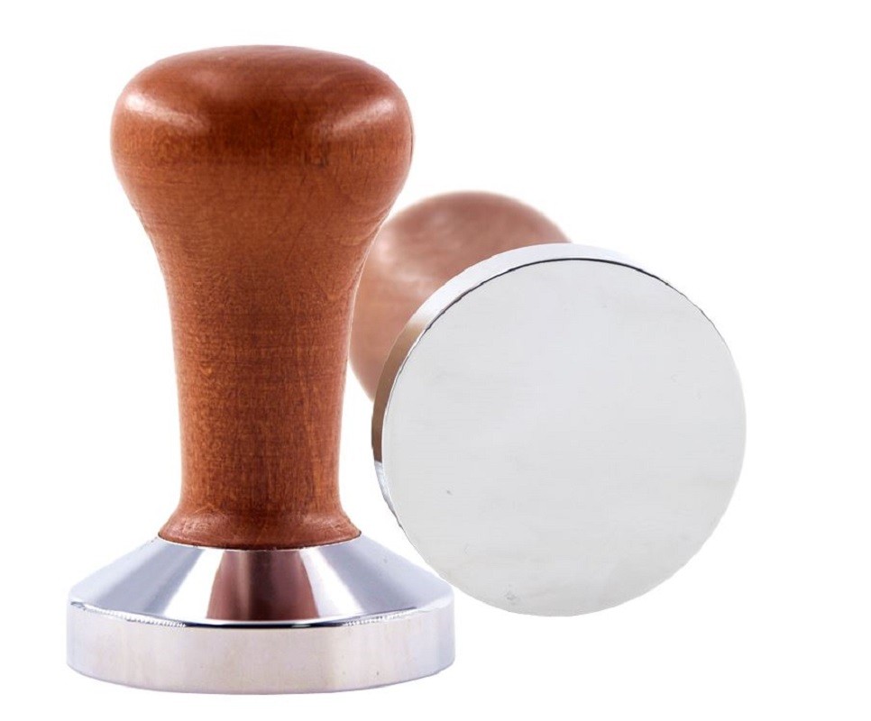 Tamper para café com pega de madeira