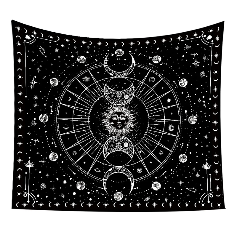 Tapeçaria boémia de parede Sol Lua Constelações Planetas Decoração Quarto Sala de Estar Sala de Meditação Cortina à Prova de Água Lavável na Máquina