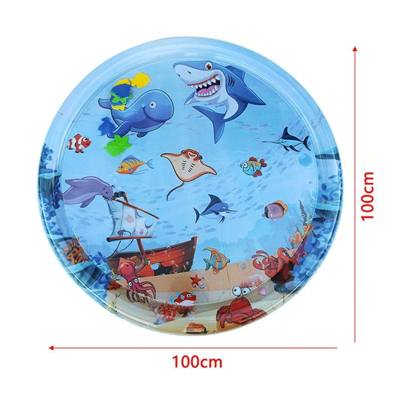 Tapete de Água para Crianças 100x100 cm PVC Inflável Brinquedo de Desenvolvimento para Bebés Aprendizagem Divertida Tempo de Barriga Tapete Interativo para Bebés