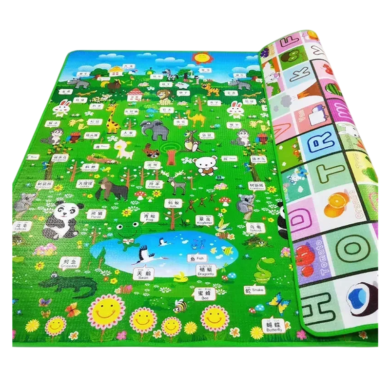 Grande tapete de espuma macia EPE para crianças desde o nascimento, com impressão dupla da natureza verde, lavável e fácil de armazenar. Descrição completa