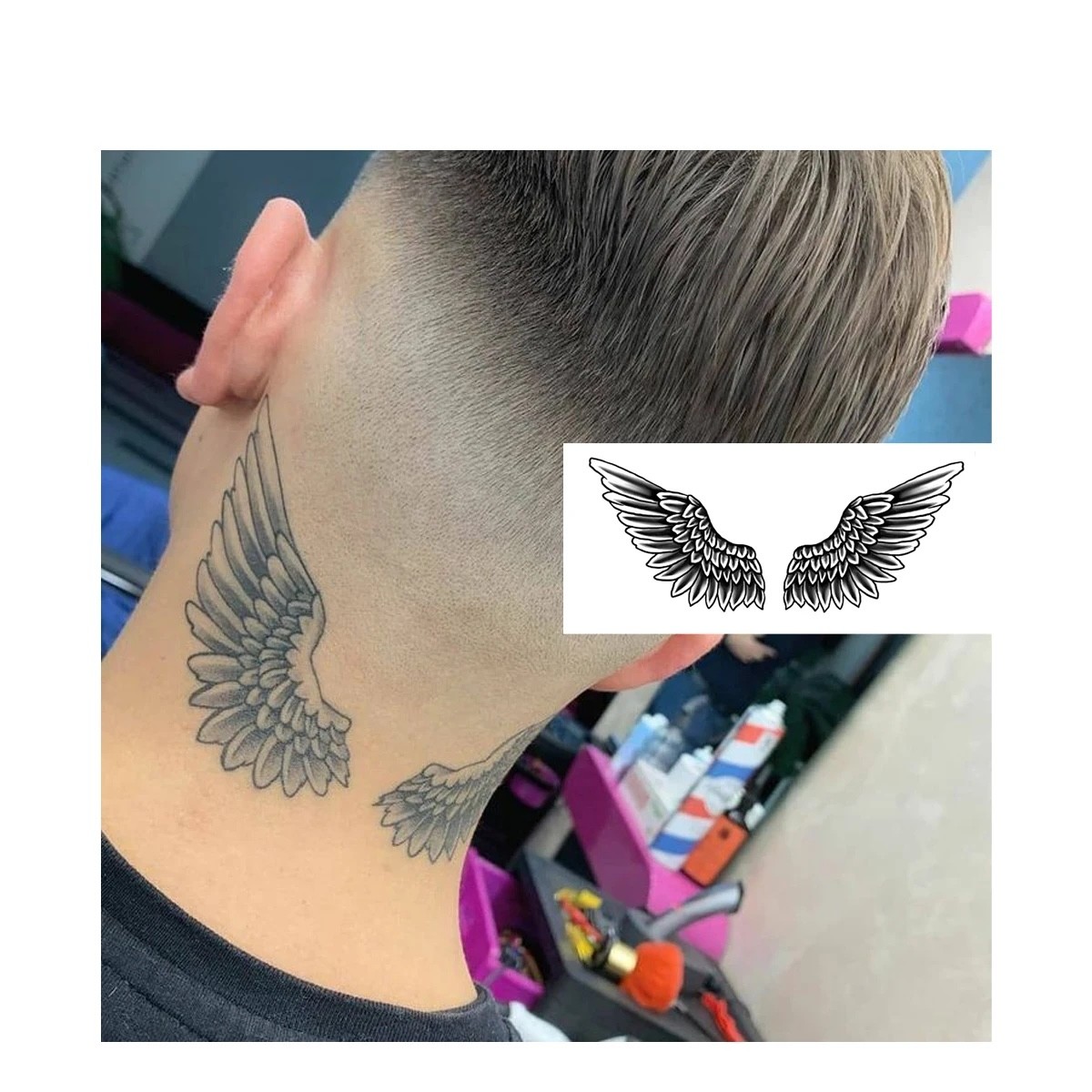 Quer adornar o seu corpo com um motivo simbólico e elegante? Esta tatuagem temporária à prova de água com asas de anjo permite-lhe expressar liberdade, leveza e força espiritual. O design detalhado e realista cria o efeito de uma verdadeira tatuagem e, graças à resistência à água, dura até 15 dias. As tatuagens são fáceis de aplicar e remover. Uma escolha perfeita para quem quer experimentar um novo estilo sem mudanças permanentes.