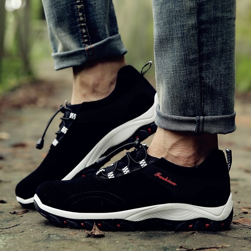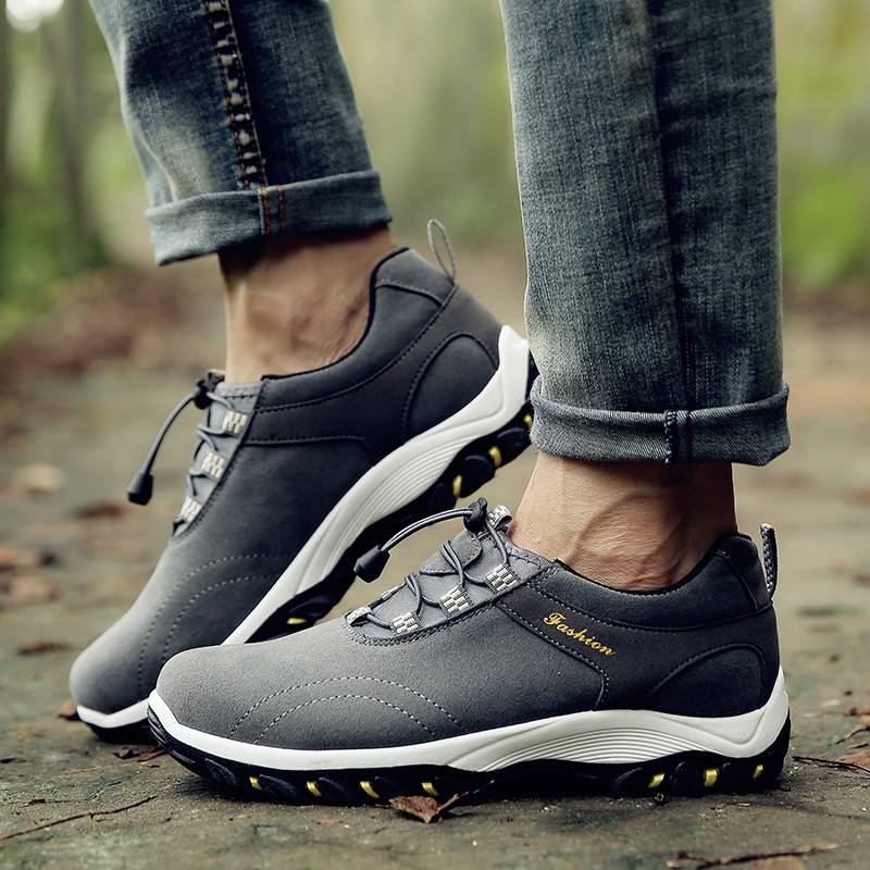 Os ténis para homem com cordão elástico garantem que o pé fique bem preso no sapato.