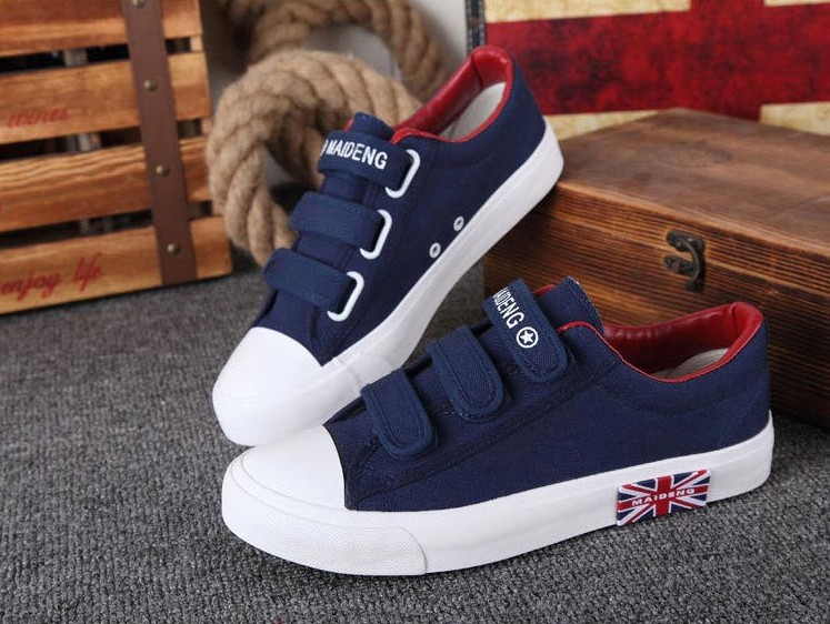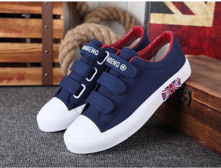 Estes ténis com a bandeira britânica são uma ótima escolha para usar com jeans ou leggings. Os sapatos fecham com velcro.