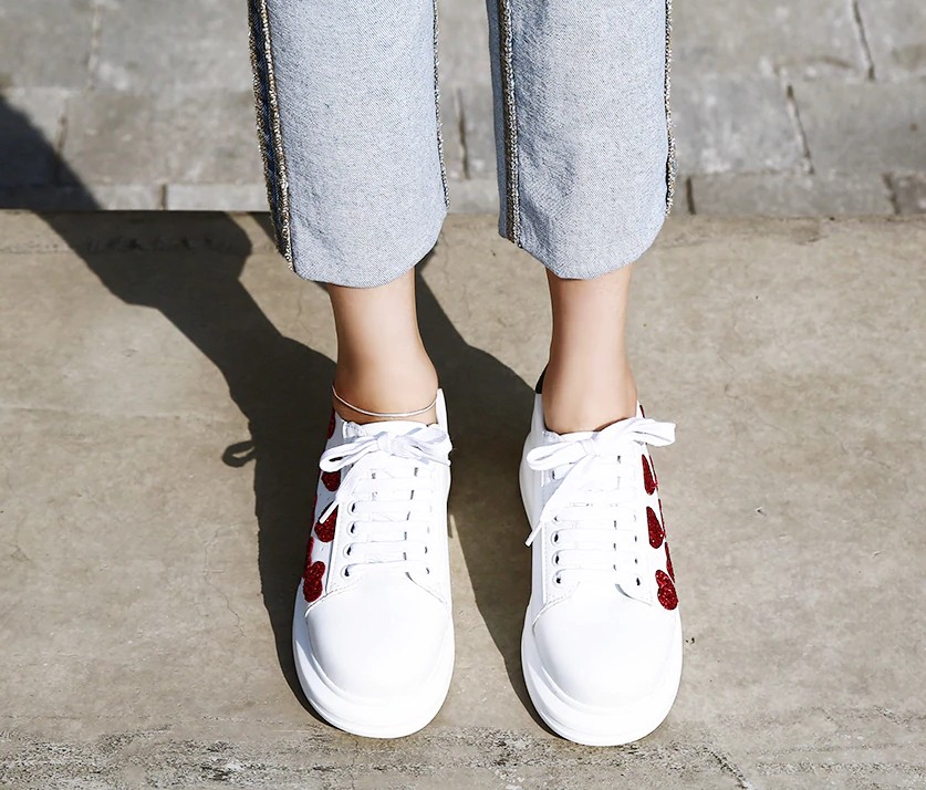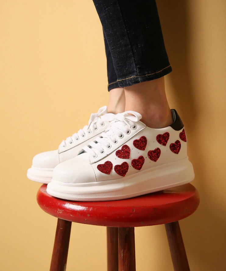 Estes ténis com corações serão adorados por qualquer mulher. Os ténis são fabricados em material de alta qualidade.