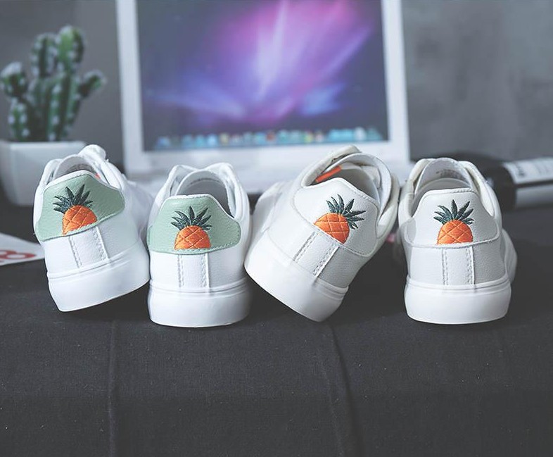 Estes ténis estilosos têm um estampado de ananás na parte de trás do sapato.