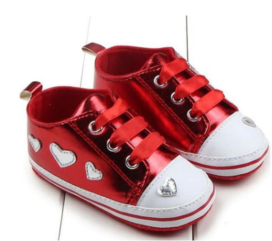 Ténis para meninas com coração vão encantar todas as pequenas fashionistas.