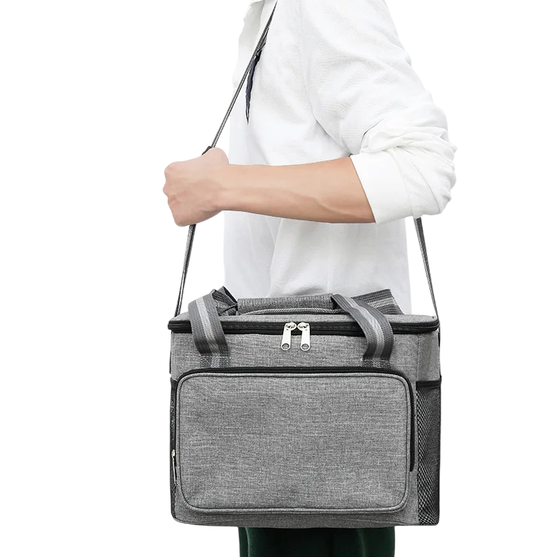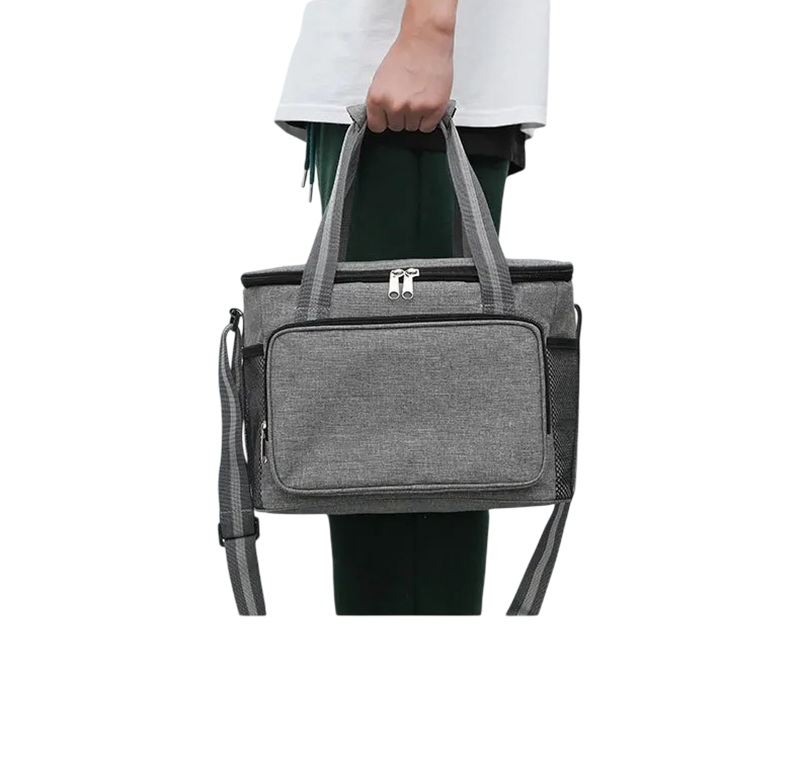 Bolsa térmica espaçosa na elegante cor cinza com isolamento interior, ideal para transportar refeições e bebidas frescas onde quer que precises. Descrição completa
