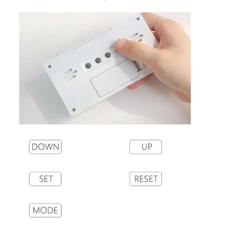 Termómetro com despertador, mede a temperatura e a humidade, exibe os valores num grande ecrã, tem função de despertar repetido e fácil controlo. Descrição completa
