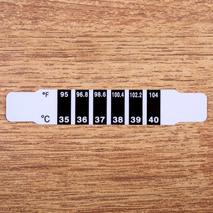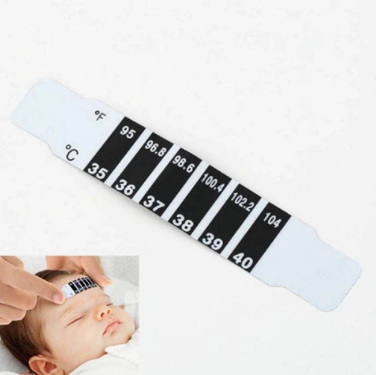 O fita termométrica é colocada na testa da criança e mede a temperatura do seu filho. Pode ser utilizada mesmo enquanto a criança dorme.