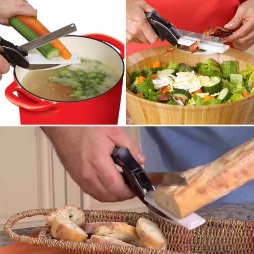 Têxas com estas tesouras incríveis, pode cortar legumes, frutas, queijos, carnes e muito mais!