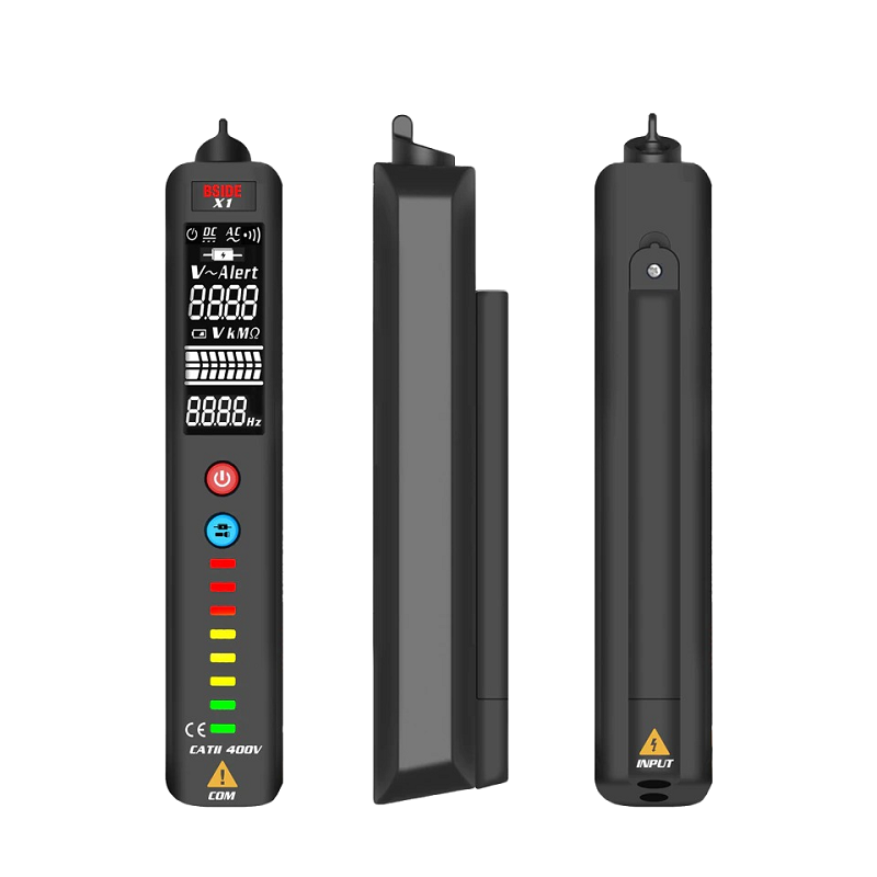 Este testador mede a tensão na faixa de 6 a 1000 V. Além disso, está equipado com um visor LCD, o que facilita a sua utilização. E se precisar de iluminar, não há problema - o testador de tensão 6-1000V dispõe de uma lanterna. Também possui a função de desligamento automático para poupança de energia.