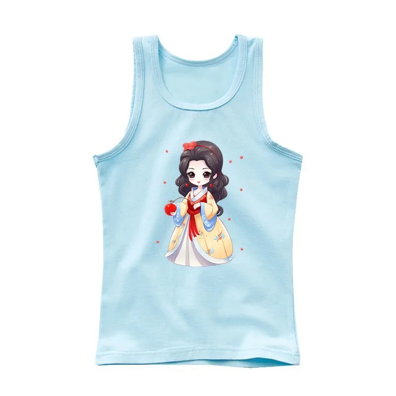Tílko de Verão para Meninas Sem Mangas 100% Algodão Camiseta Lisa com Princesa Desenhada Top Moda Fofo para Crianças Confortável em Várias Cores