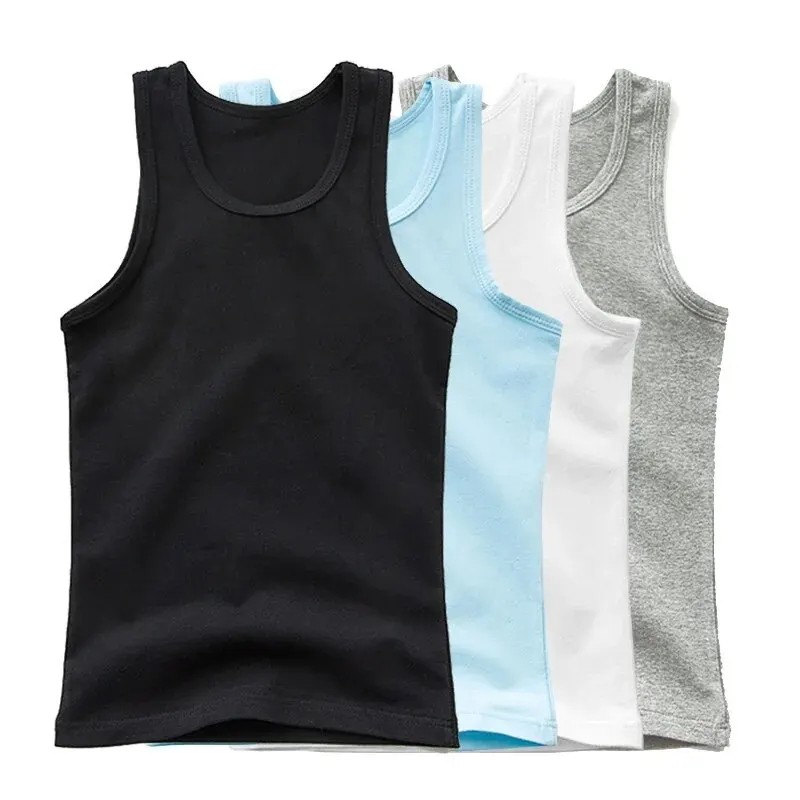 Tílko infantil para rapazes e raparigas 100% algodão e poliéster Camiseta de verão sem mangas com decote redondo Confortável várias cores