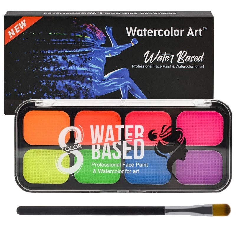 Esta paleta profissional de tintas para o rosto é ideal para crianças e adultos! Oito cores de alta qualidade são facilmente laváveis. Quer esteja a criar algo verdadeiramente único para uma ocasião especial, esta paleta é perfeita para si. Com uma variedade de cores vibrantes e na moda, certamente encontrará algo que lhe agrade.