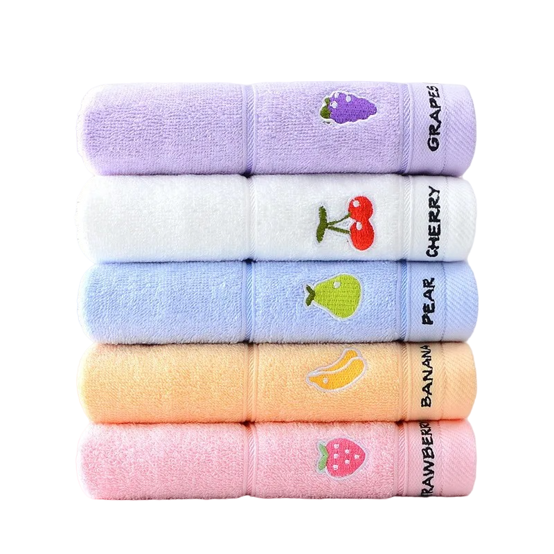 Toalha de algodão para crianças com estampado de fruta Toalha de mão infantil de algodão macio 50 x 25 cm
