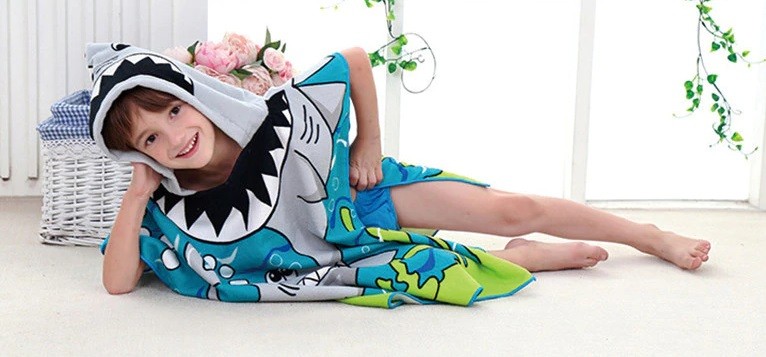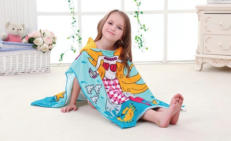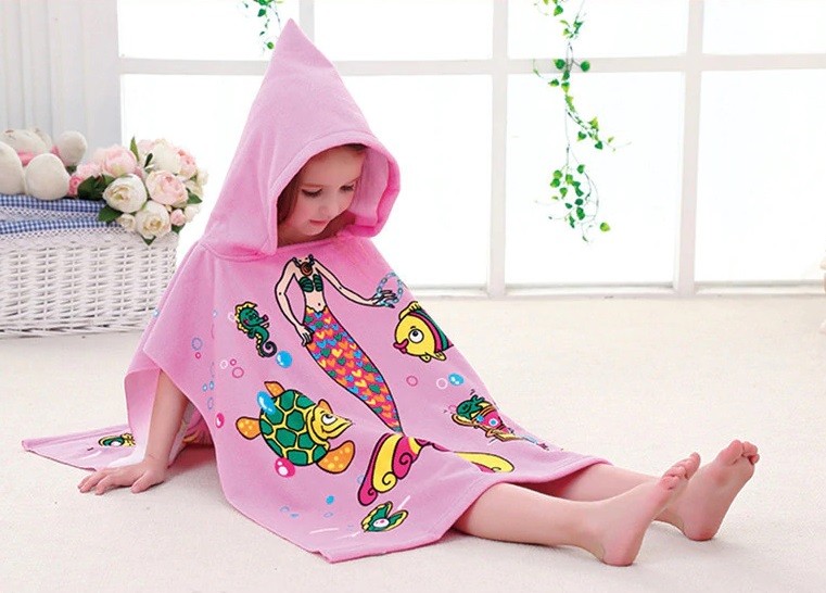 A toalha de banho para crianças com capuz é um ótimo auxiliar para as mamães.