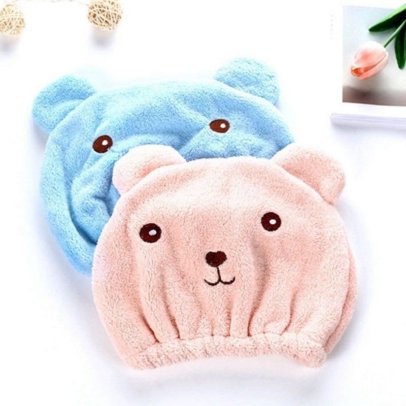 A toalha tem a forma de um chapéu e faz com que o cabelo seque mais rapidamente.