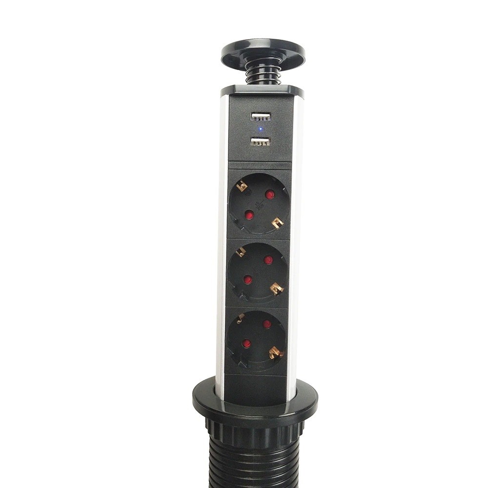 Tomada deslizante 2x USB, 3x tomada 1,9 m