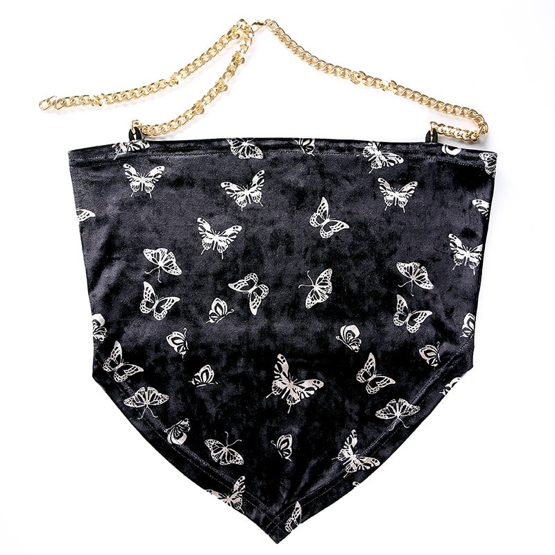 Top assimétrico feminino com borboletas