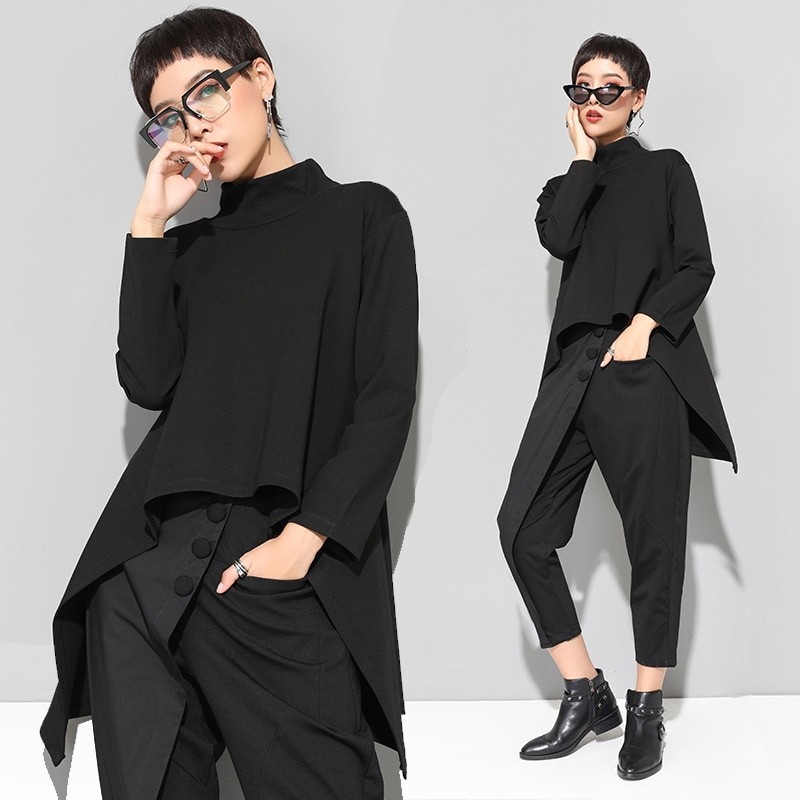 Top assimétrico feminino preto