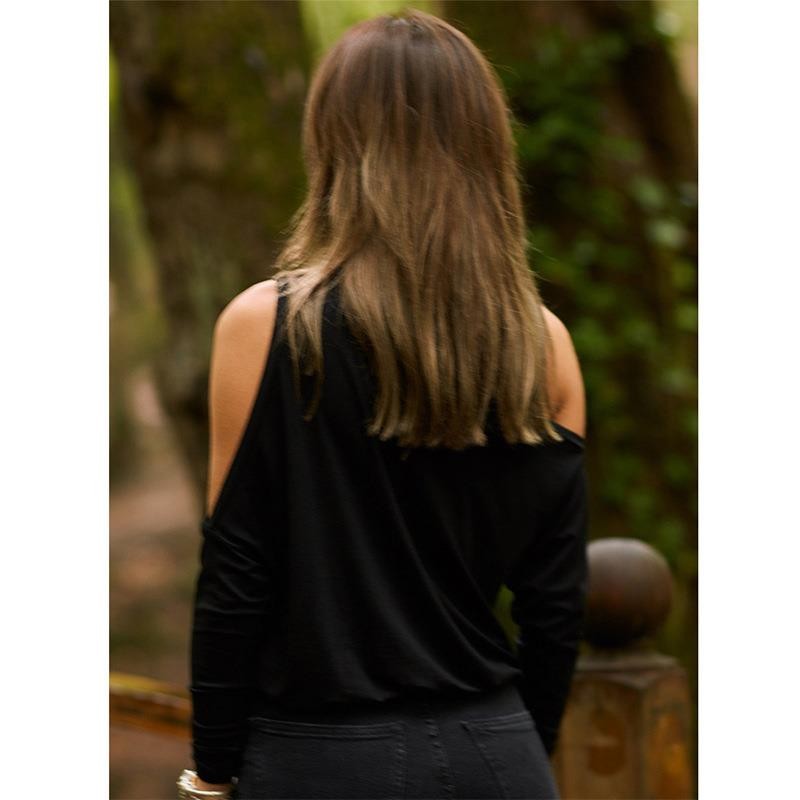 Top assimétrico preto para senhora A1326